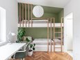 The partially used attic space has been turned into a cozy home for a family of five with beautiful views of Rožnik. The apartment was in its original state and required thorough renovations. The floor plan allowed authors to achieve a high, bright and spacious living area, while the sleeping areas were placed under the sloping ceilings, where there is no standing height. The interior is composed of soft, curved lines, and the materials are in beige tones combined with natural oak.