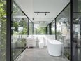 The mini house in Bac Cau will be added as a stopover by sprinkling the filigree construction into the existing flora. The transparency of the house makes it possible without a clear form and disappears into the time-space of the river quay. The plants act here as the outer skin for the house. Thanks to the river wind and the free sliding wall system, the house always has optimal air circulation. The house is symbiotically intertwined with the old trees of the property through layers of overlapping rooms of different depths.